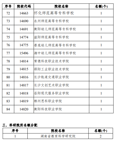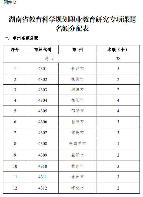 2024 年湖南省教育科学规划职业教育专项课题申报名额分配表